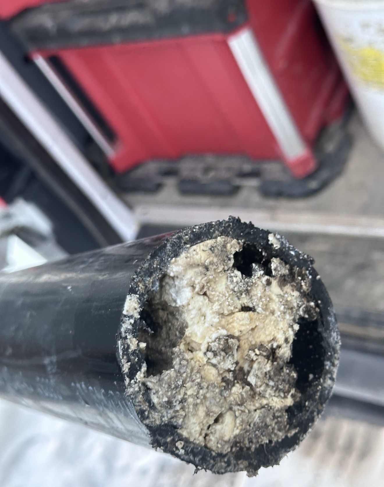 Wondering what’s gunking up your pipes? This homeowner called us after dealing with slow-draining fixtures and repeated backups. During a line repair, our team was able to physically cut into the pipe and see exactly what was causing the problem. The buildup inside was severely restricting flow, leading to ongoing drainage issues. By identifying the blockage at its source, we were able to recommend the proper repair solution and restore the plumbing system’s performance. If you’re experiencing slow drains, frequent backups, or unexplained plumbing issues, it may be more than just a simple clog. Professional inspection and line repair can reveal what’s really happening inside your pipes—and prevent bigger, more costly problems down the road. Experiencing slow drains or backups? Contact us today for expert drain inspection and repair.
